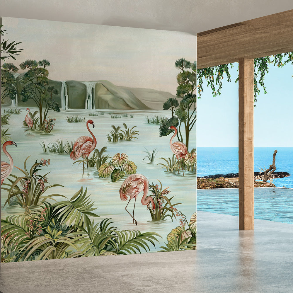 Carta da parati in Fibra di Vetro Lago dei fenicotteri Wallpaper Dream