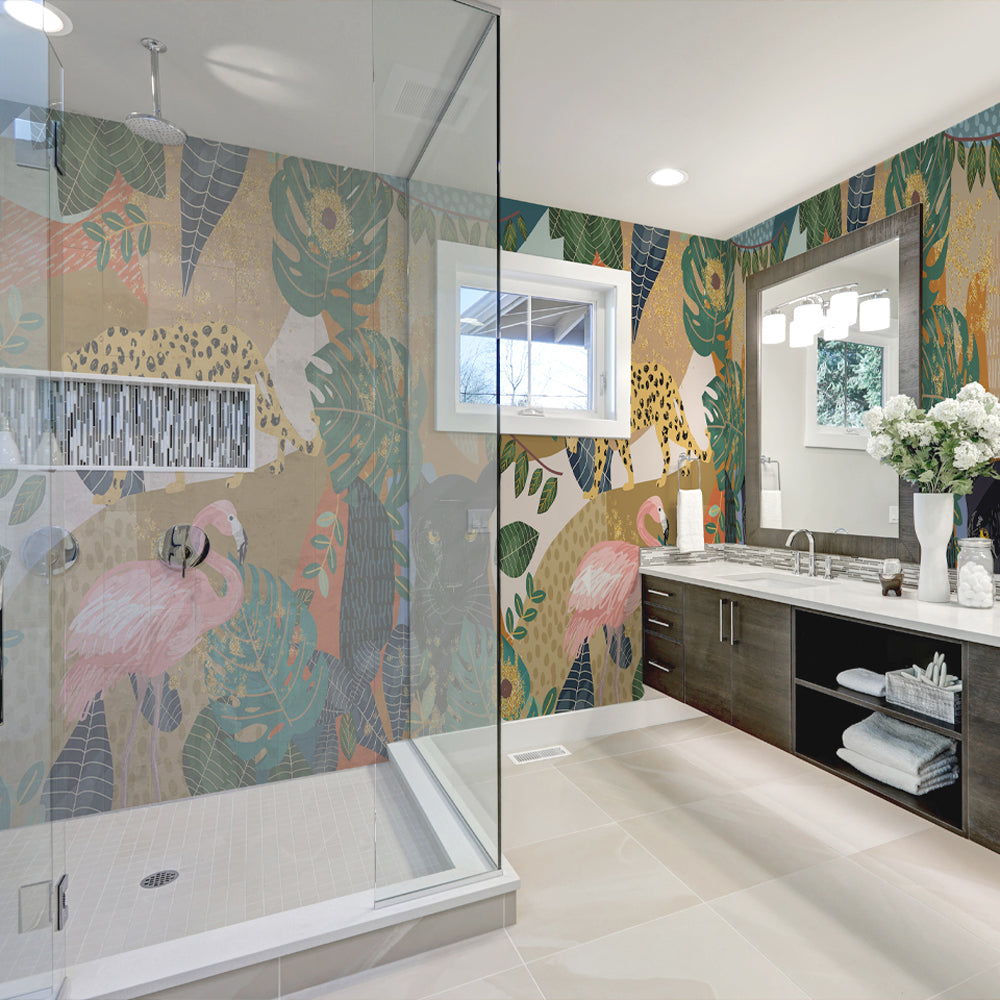 Scopri la vasta selezione di carte da parati per dare un cambio di scenario al tuo bagno e toilette creando un ambiente di design. Le nostre carte da parati sono impermeabili, idrorepellenti e lavabili, perfette per l'ambiente umido del bagno. Scegli tra i nostri stili di carta da parati, dal classico al moderno, jungle, floreale, tropicale e molti altri, per creare un'atmosfera unica e rilassante. Inoltre, le nostre carte da parati sono ideali anche come rivestimento per piastrelle, per una rinnovata bellezza del tuo bagno.