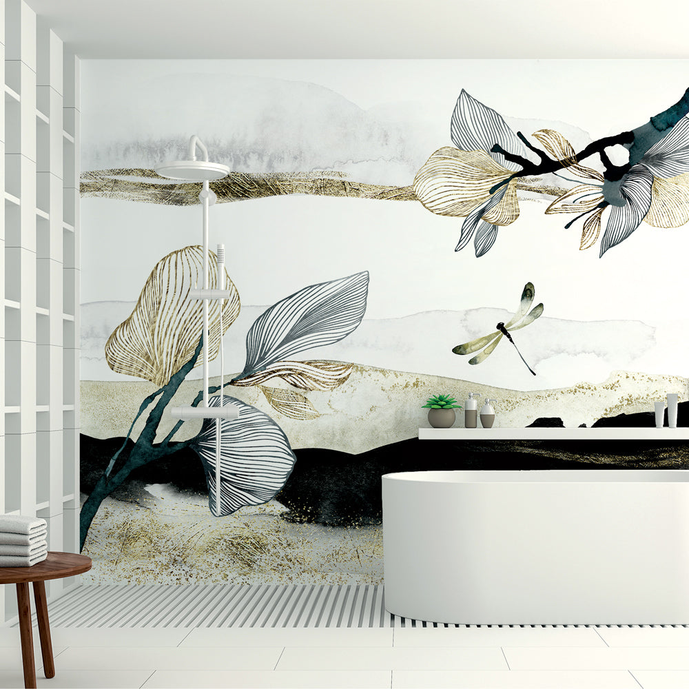 Carta da parati in Fibra di Vetro Libellula con tratti oro Wallpaper Dream