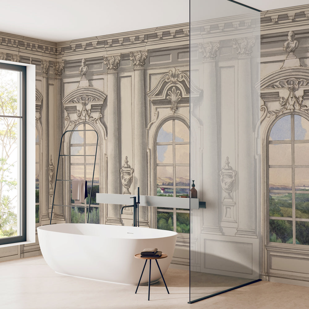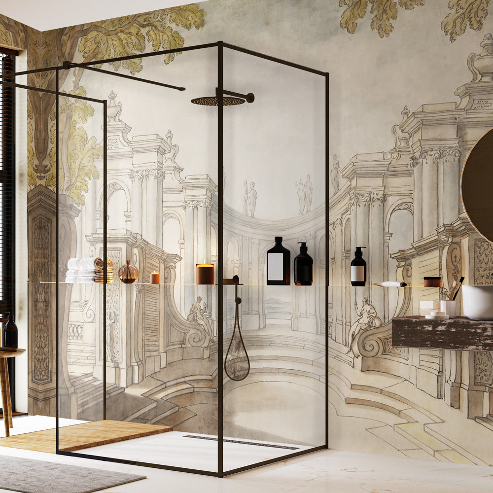 Carta da parati in Fibra di Vetro Incisione antica La nostra carta da parati in vetroresina è ideale per decorare ambienti umidi a diretto contatto con l'acqua. Grazie alle sue proprietà impermeabilizzanti può essere un'ottima soluzione per decorare il box doccia. Sfoglia il nostro catalogo e crea una doccia di design personale!
