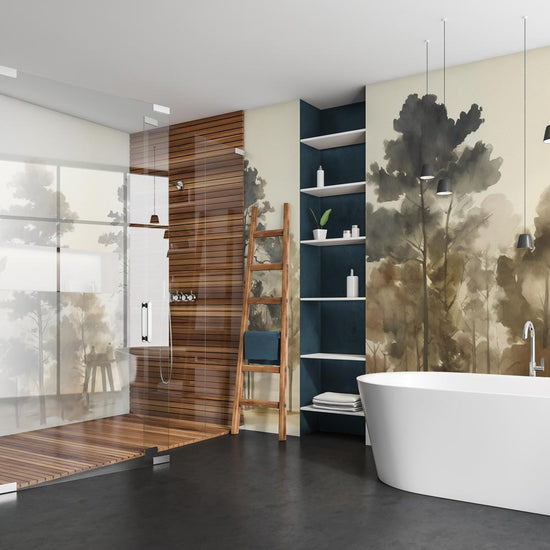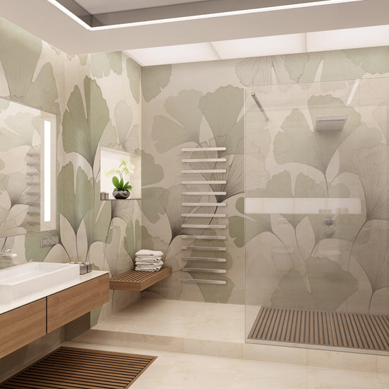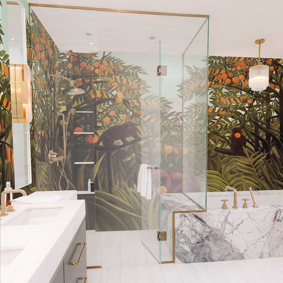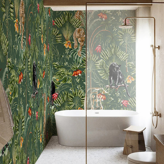 Carta da parati in Fibra di Vetro Giungla maestosa La nostra carta da parati in vetroresina è ideale per decorare ambienti umidi a diretto contatto con l'acqua. Grazie alle sue proprietà impermeabilizzanti può essere un'ottima soluzione per decorare il box doccia. Sfoglia il nostro catalogo e crea una doccia di design personale!