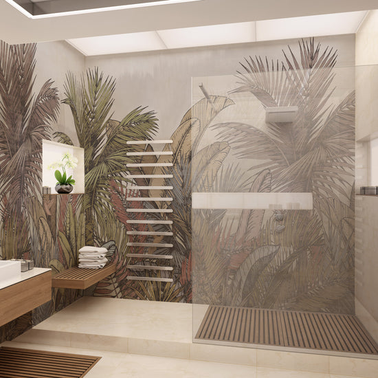 Carta da parati in Fibra di Vetro Incisione di fiori La nostra carta da parati in vetroresina è ideale per decorare ambienti umidi a diretto contatto con l'acqua. Grazie alle sue proprietà impermeabilizzanti può essere un'ottima soluzione per decorare il box doccia. Sfoglia il nostro catalogo e crea una doccia di design personale!