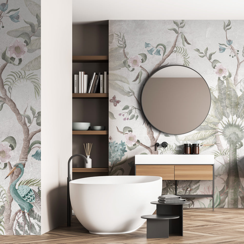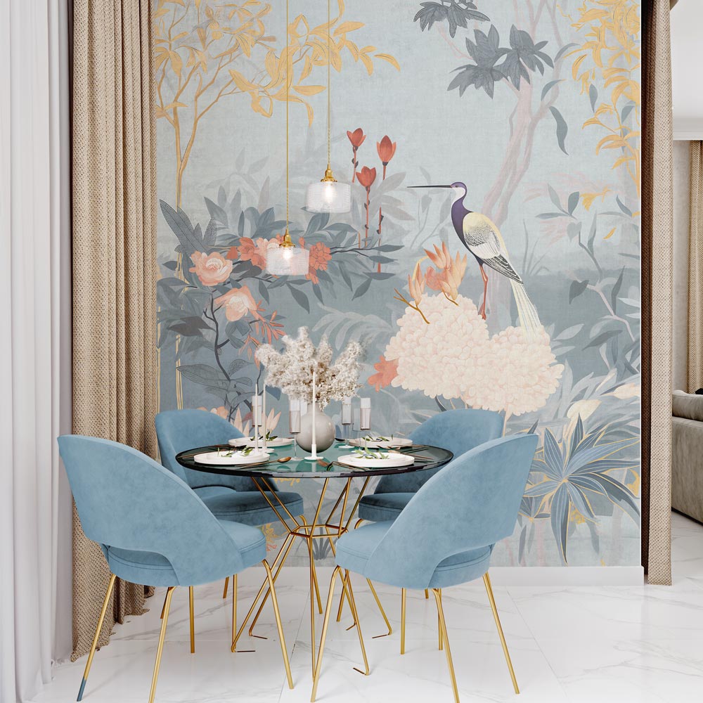 La carta da parati chinoiserie offerta da WallpaperDream raffigura temi orientali, dalle gru giapponesi alle arti cinesi con particolari arti decorative floreali vintage ispirate agli anni settanta.