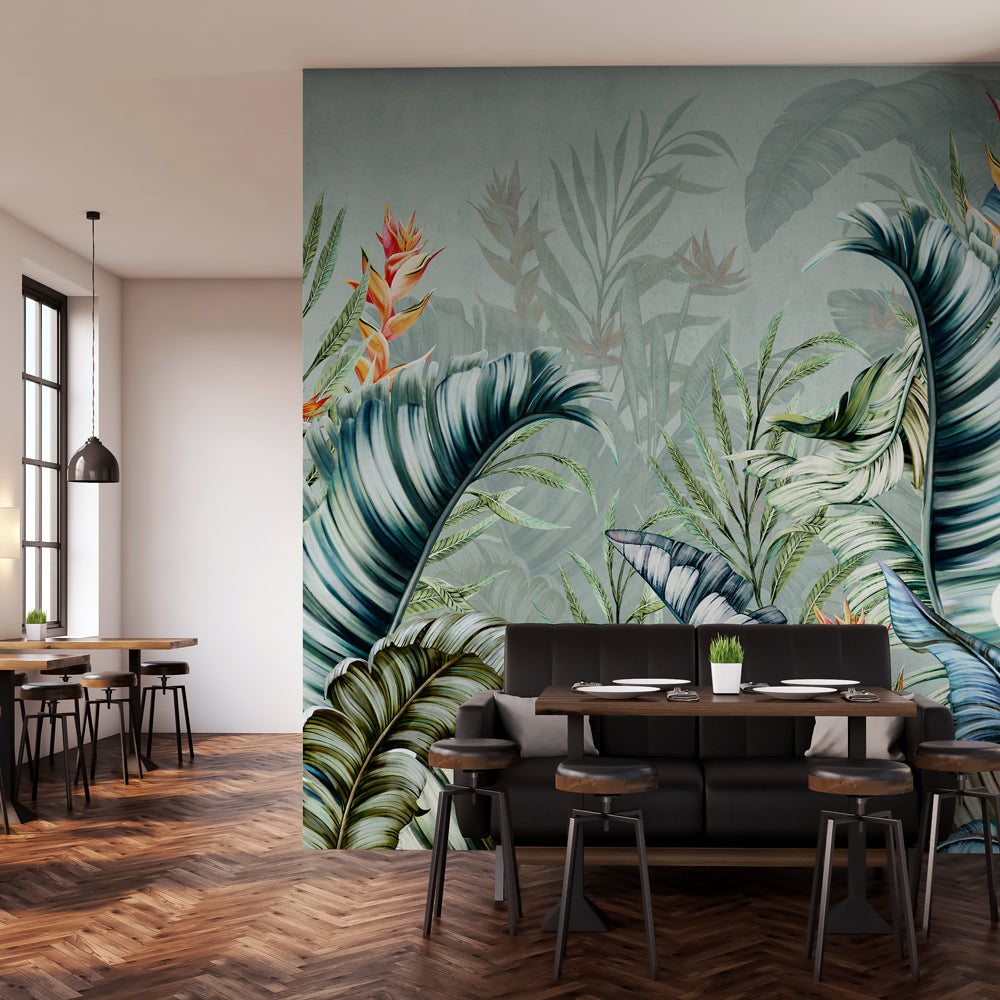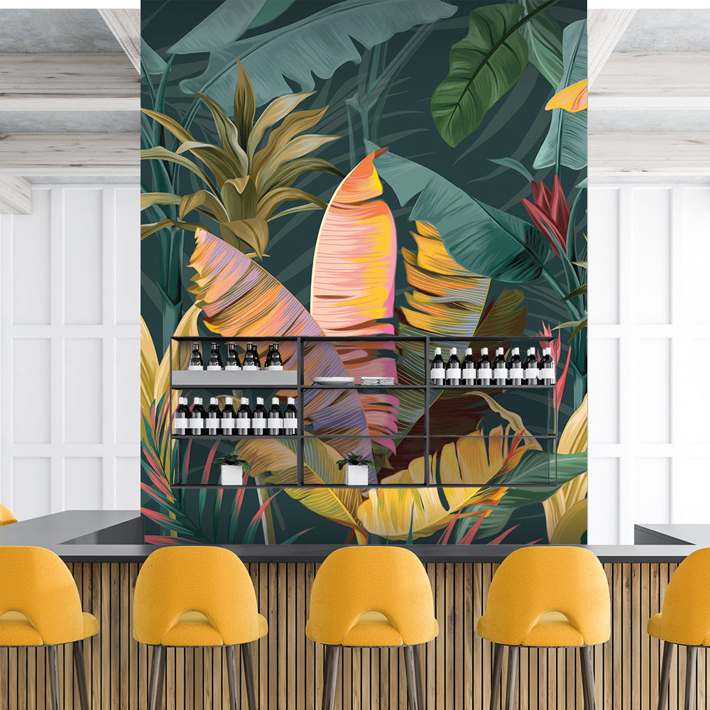 Carta da parati in Fibra di Vetro Colorful banana leaves Rinnova l'atmosfera del tuo locale pubblico con carta da parati su misura, ideale per trasformare il tuo bar, ristorante, pizzeria o caffetteria in un'esperienza gastronomica unica. Dai un tocco di personalità e stile al tuo locale, scegliendo tra una vasta gamma di design accattivanti e texture esclusive.