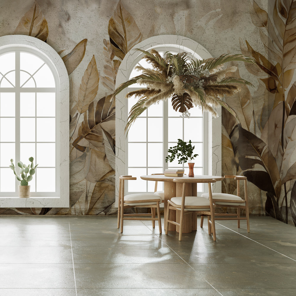 Carta da Parati Foglie d'ambra Carte da parati sala da pranzo: rinnova il tuo spazio con stile
