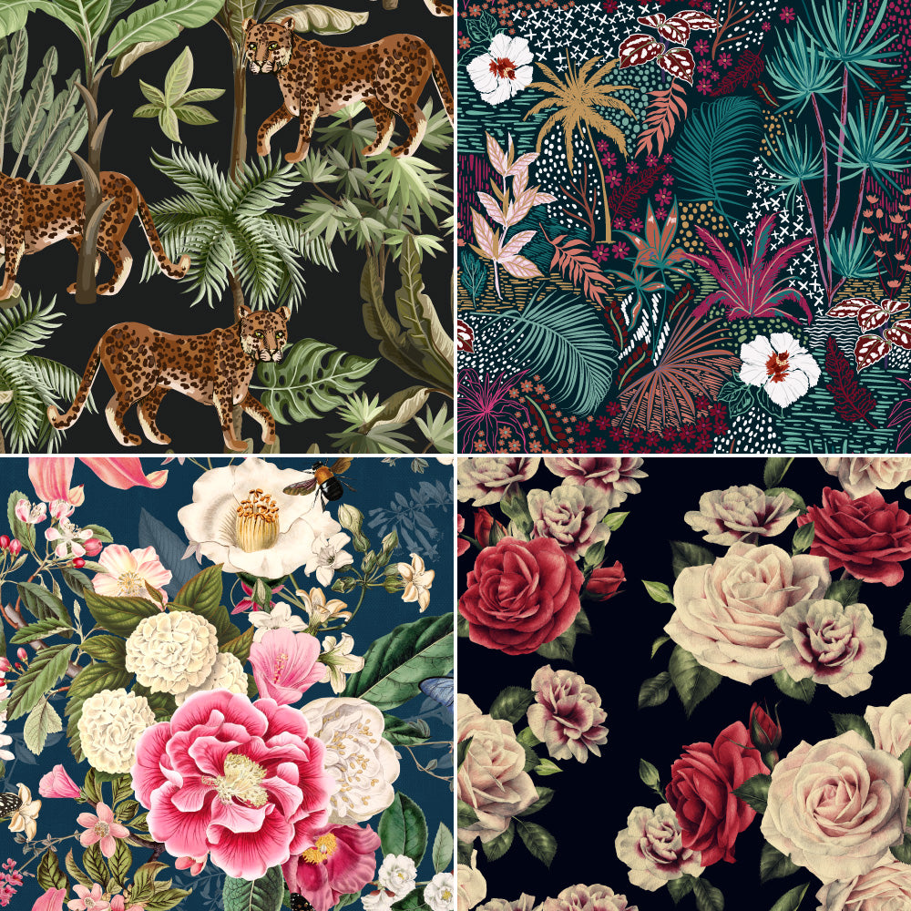 Puoi trovare anche tappezzerie adesive con gli elementi della natura che danno nuova vita alla decorazione e all'interior design. Sentirsi immersi nel verde anche a casa è una sensazione rigenerante con rose, ibiscus, tucani, piante e tanto altro.