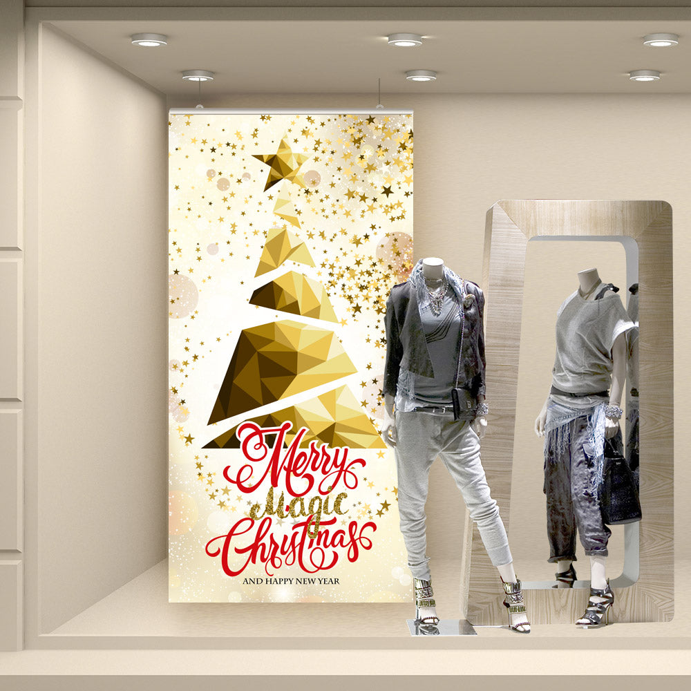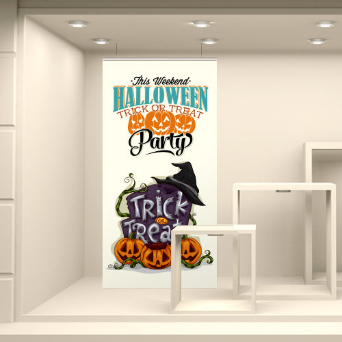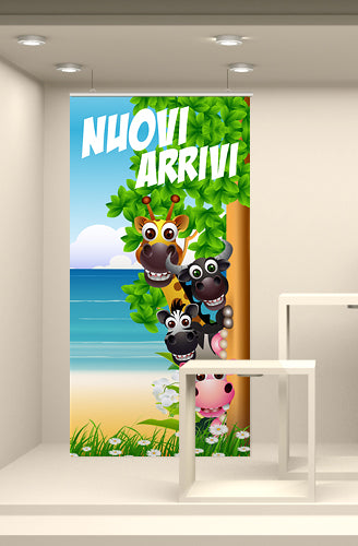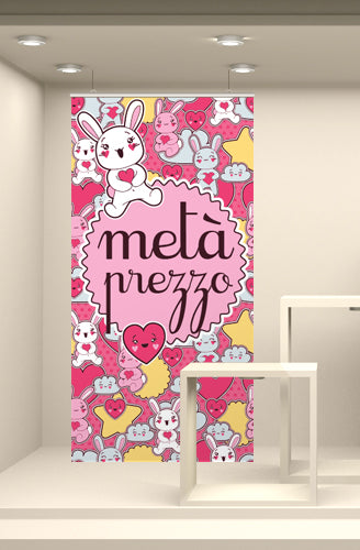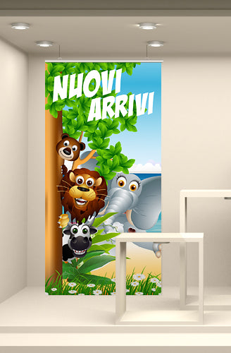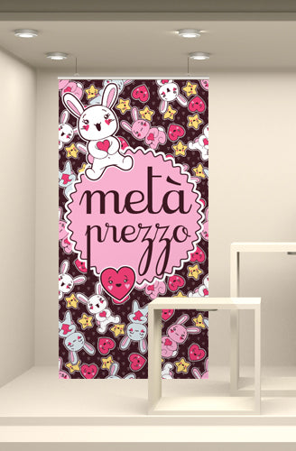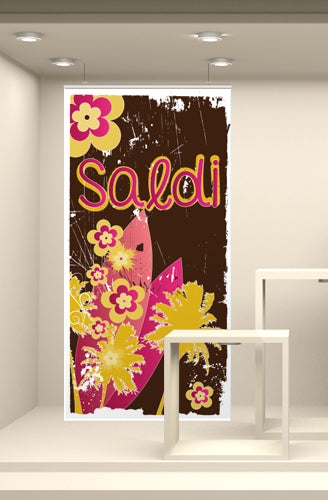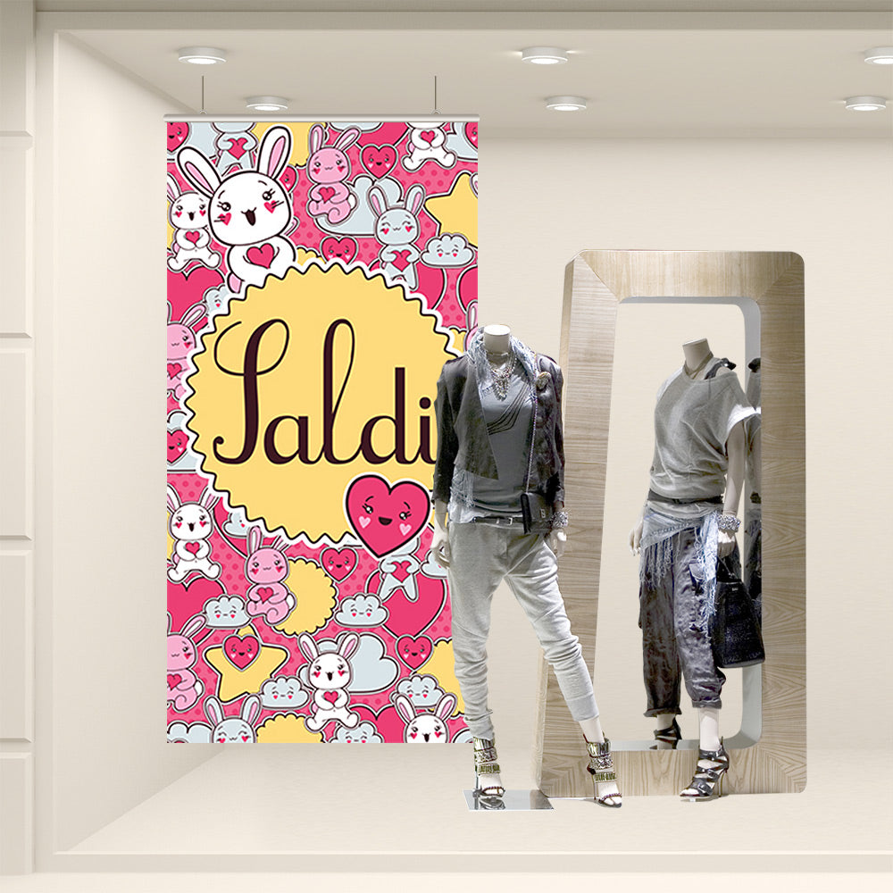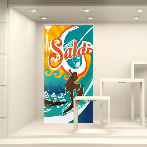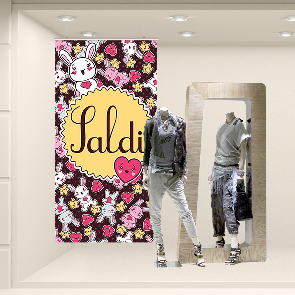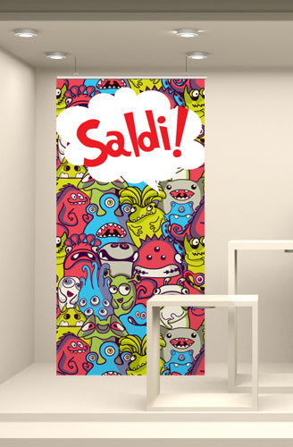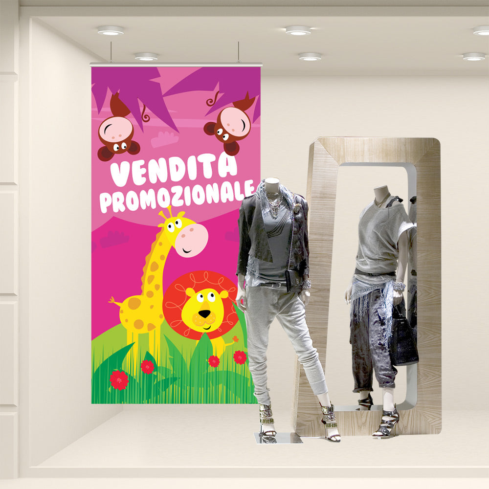 Fondale vetrina stampato ad alta risoluzione su tessuto fotografico. Corredato da bacchette in plastica rigida e ganci per la sospensione, è già pronto per l’utilizzo finale.