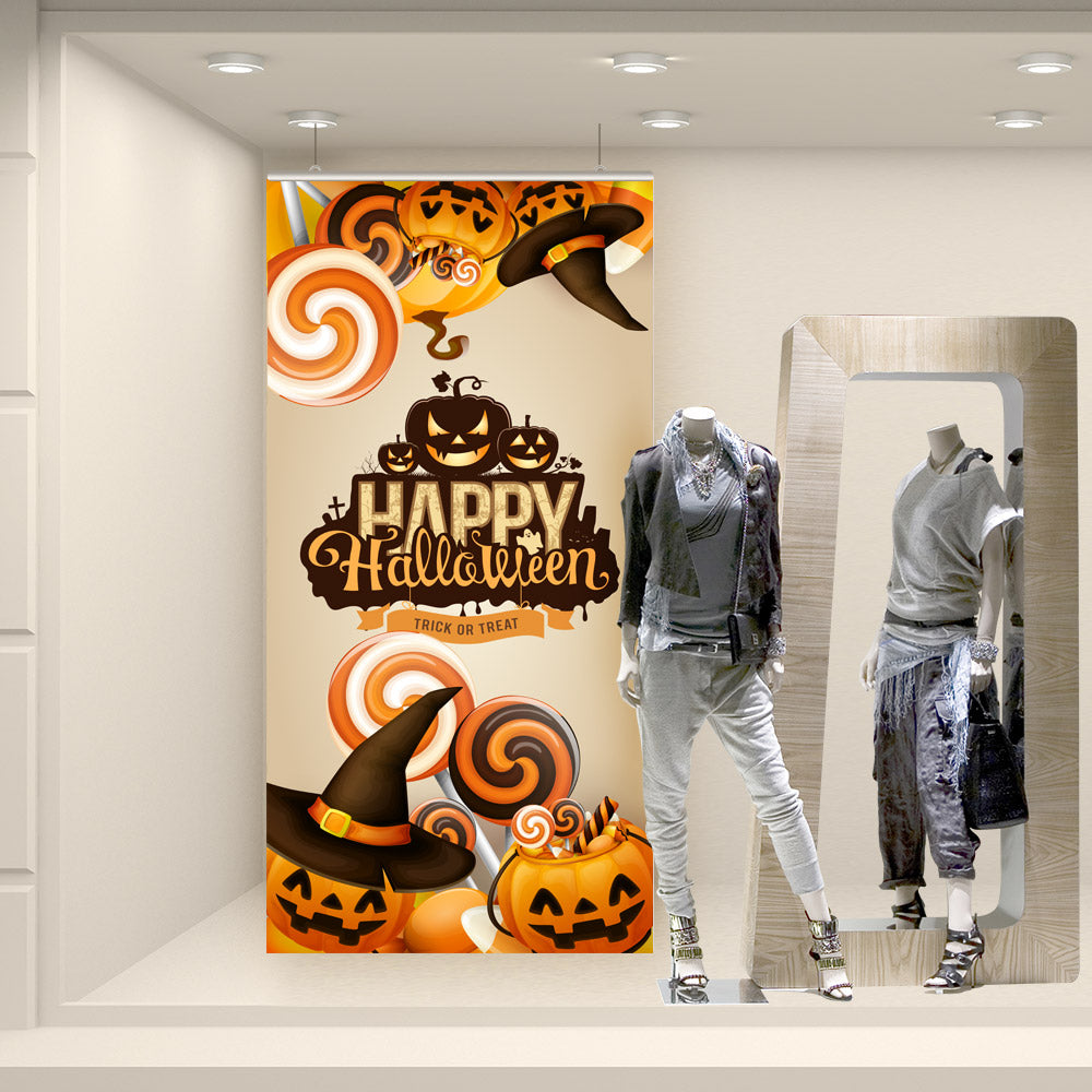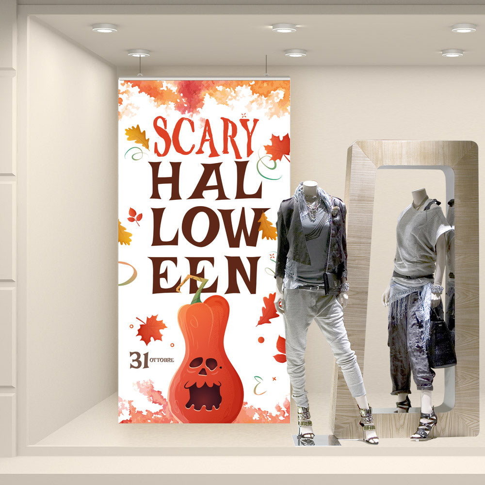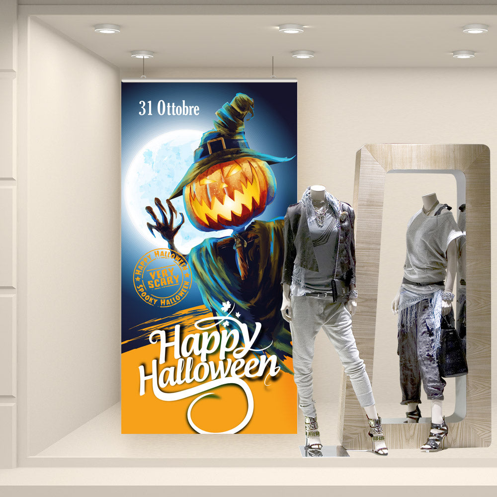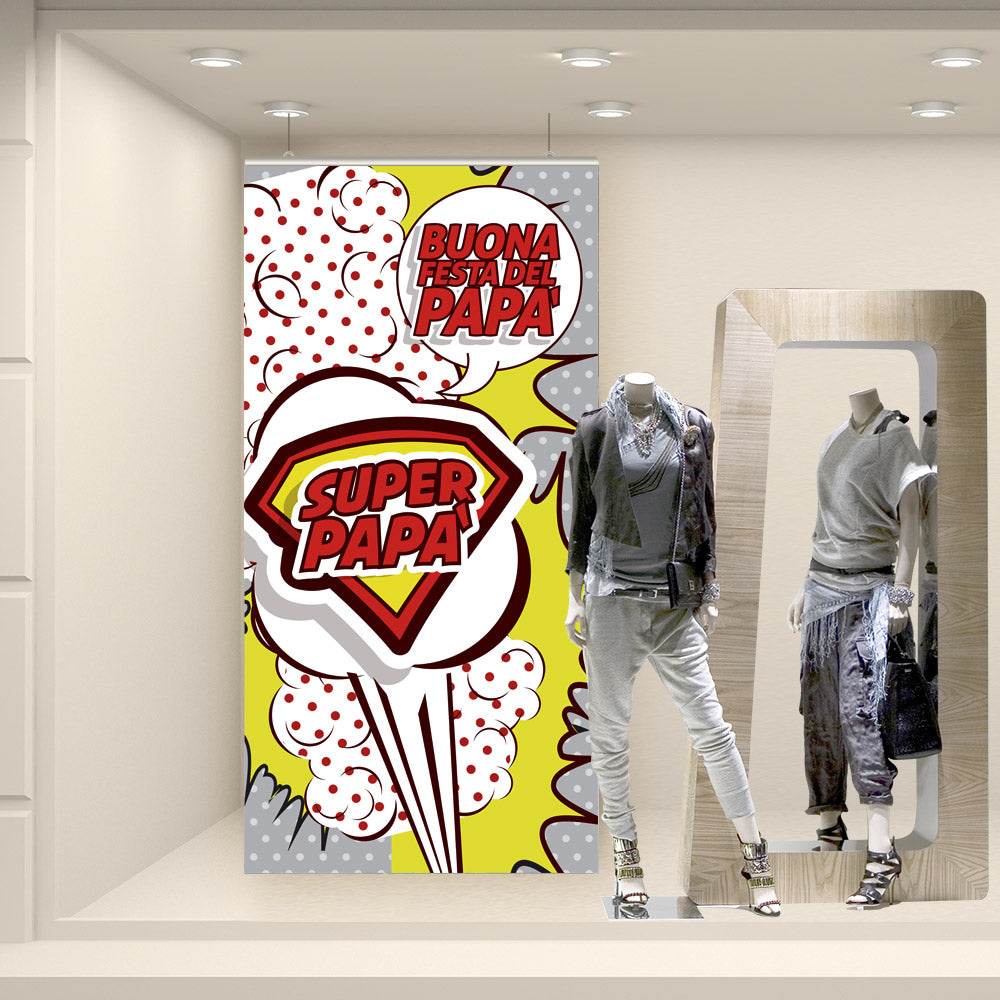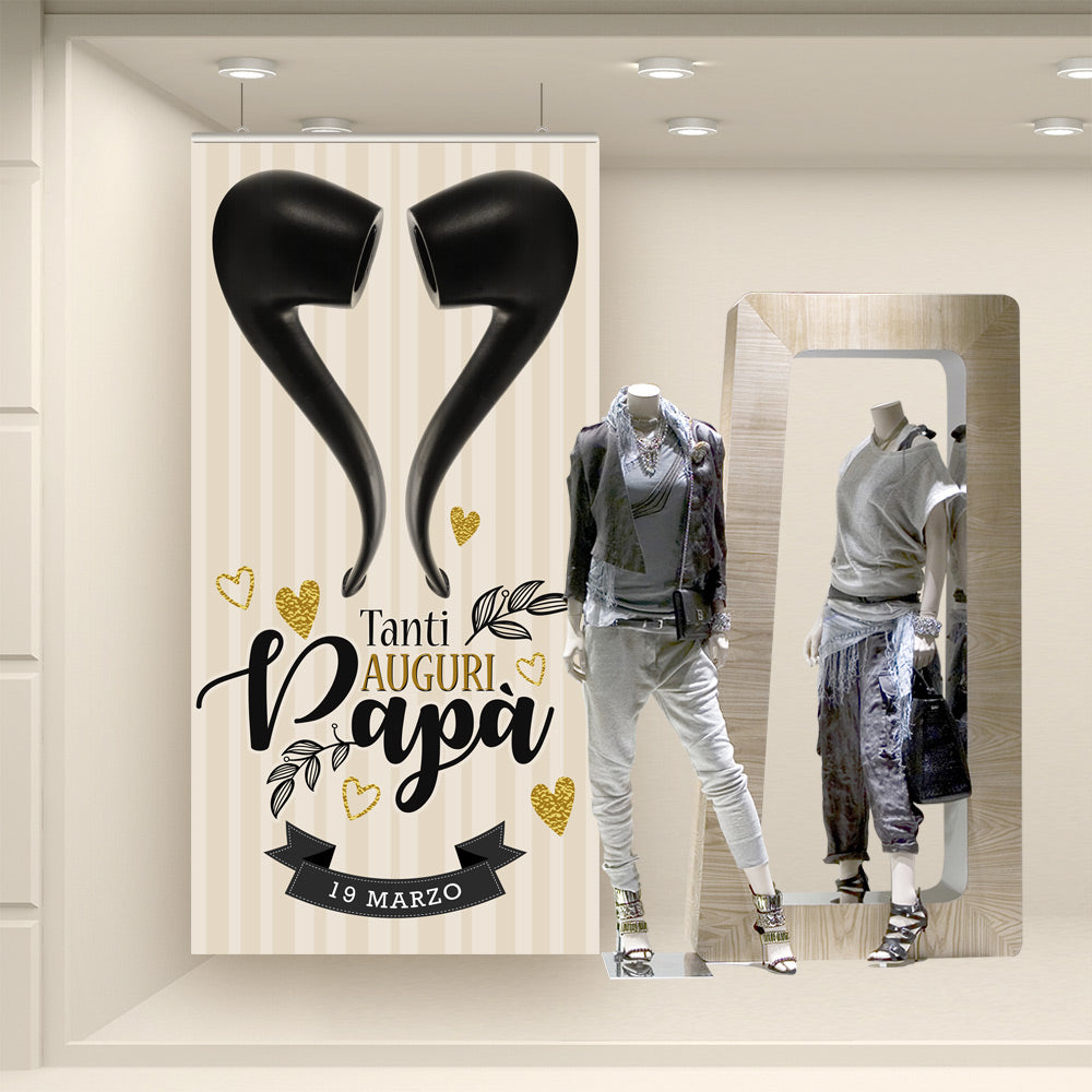 Fondale vetrina stampato ad alta risoluzione su tessuto fotografico. Corredato da bacchette in plastica rigida e ganci per la sospensione, è già pronto per l’utilizzo finale.