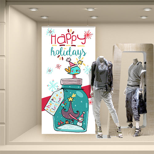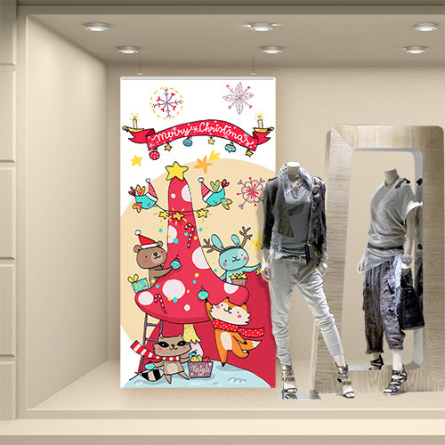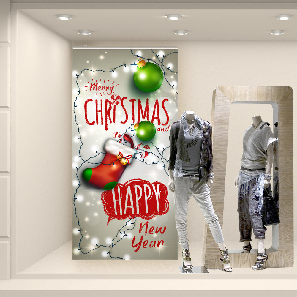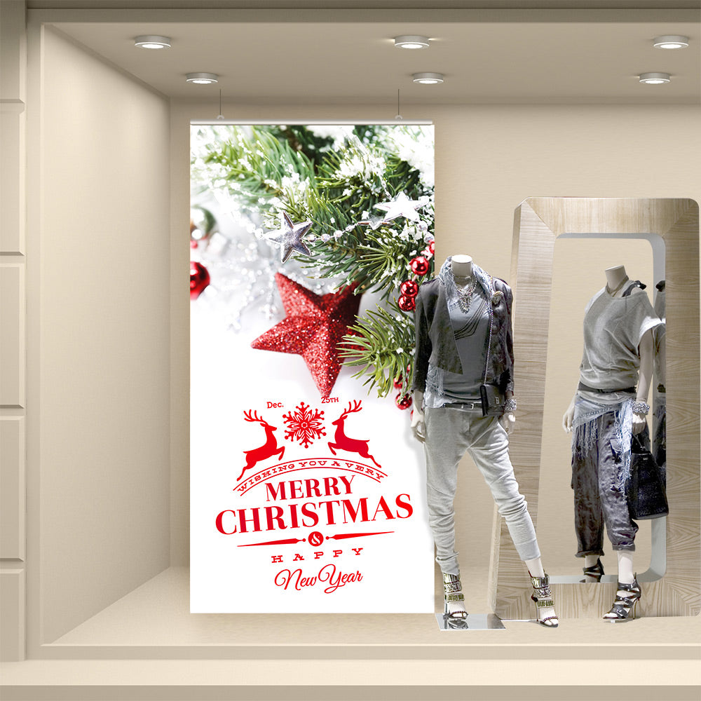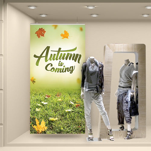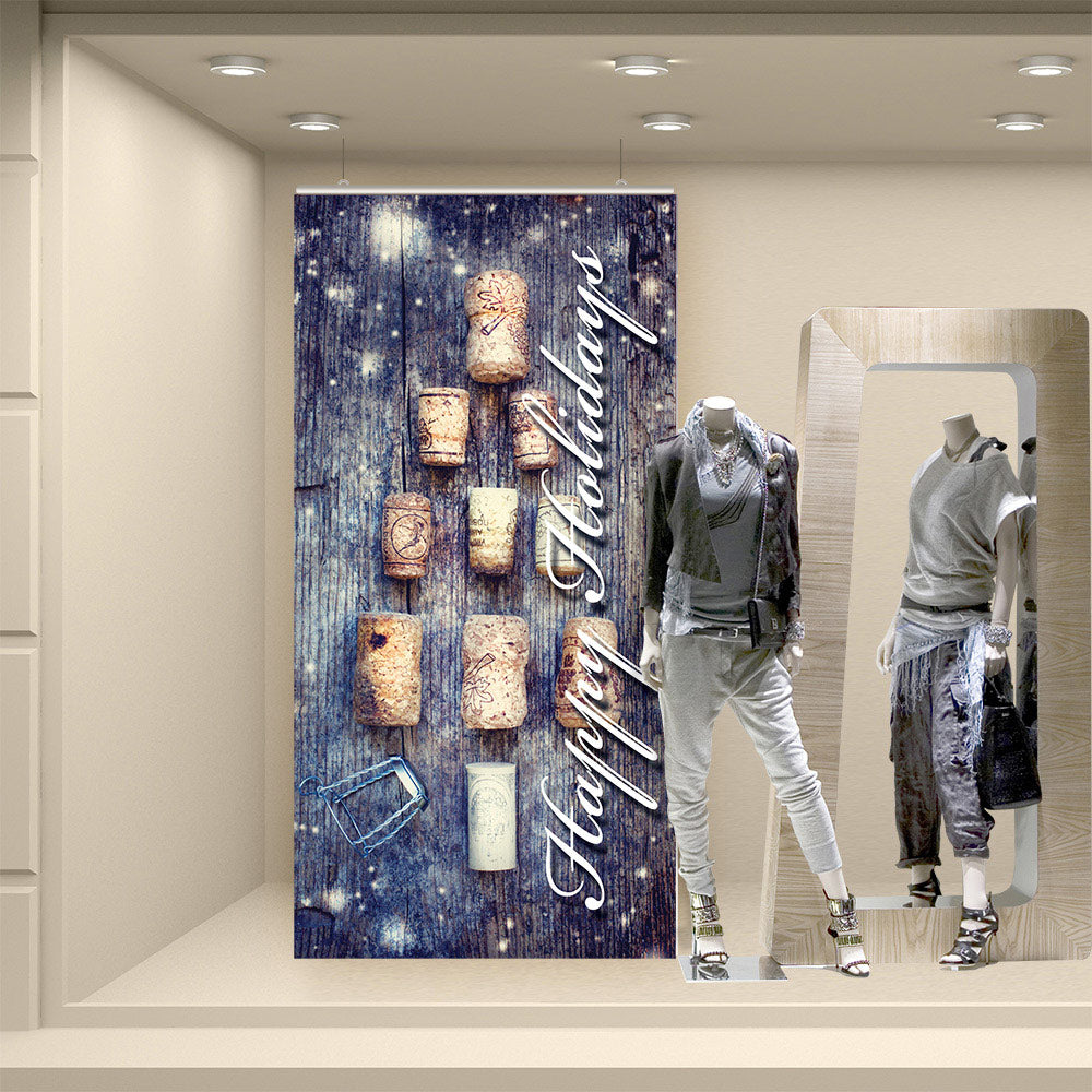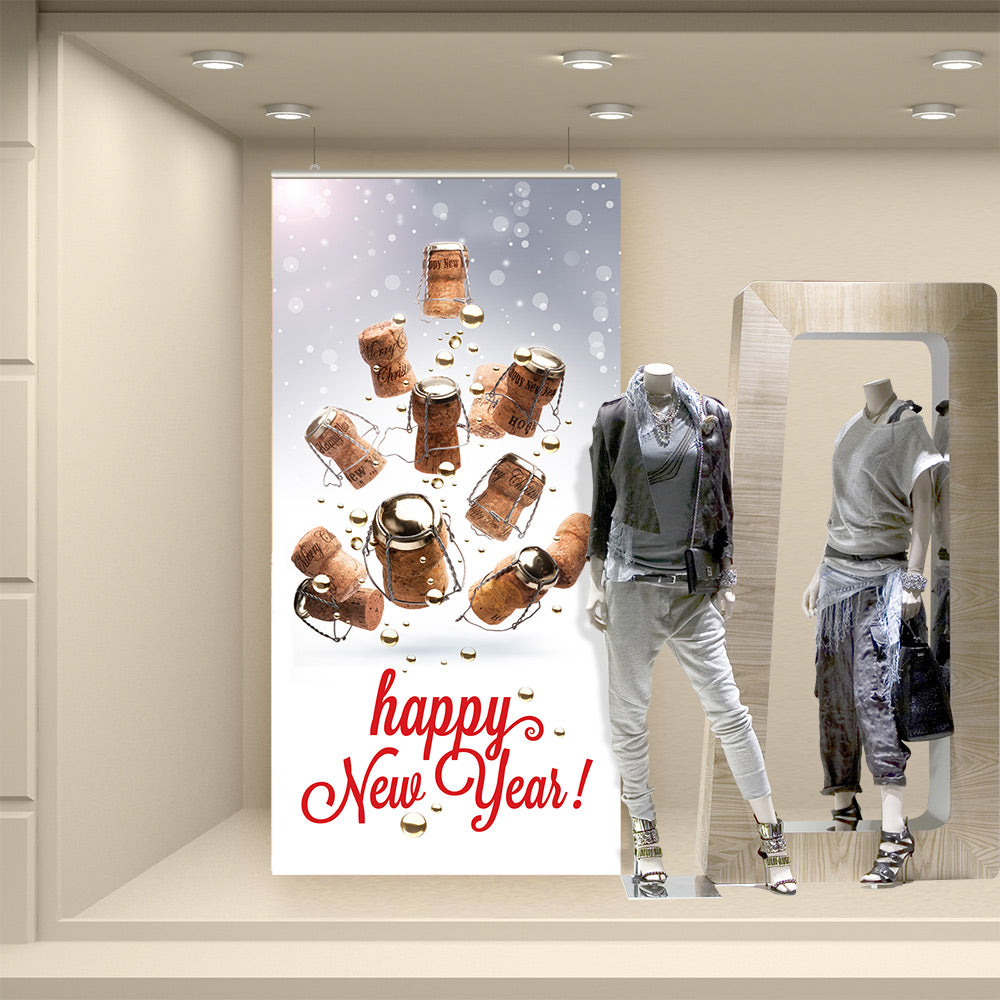 Fondale vetrina stampato ad alta risoluzione su tessuto fotografico. Corredato da bacchette in plastica rigida e ganci per la sospensione, è già pronto per l’utilizzo finale.