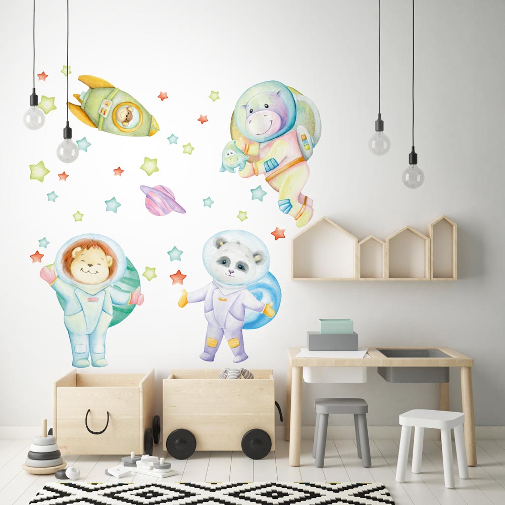 Trasforma la cameretta dei tuoi bambini in un mondo di fantasia e colore con i nostri kit decorativi, compresi adesivi da parete e decorazioni adesive. I nostri colori sono sicuri e vivaci, perfetti per stimolare la creatività dei piccoli. Inoltre, il materiale è ignifugo e certificato per l'uso domestico, garantendo la massima sicurezza. Facili da pulire e resistenti ai graffi, le nostre decorazioni sono pensate per durare nel tempo, accompagnando i tuoi bambini in ogni avventura nella loro cameretta.