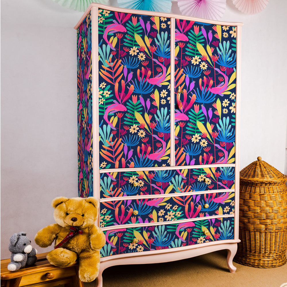 Potrai rivestire ante armadio della cameretta dei tuoi bambini, personalizzandola con adesivi decorativi per mobili a tema floreale o geometrico con immagini infantili oppure rendendo unico un tavolo semplice o noioso, applicando diverse texture.