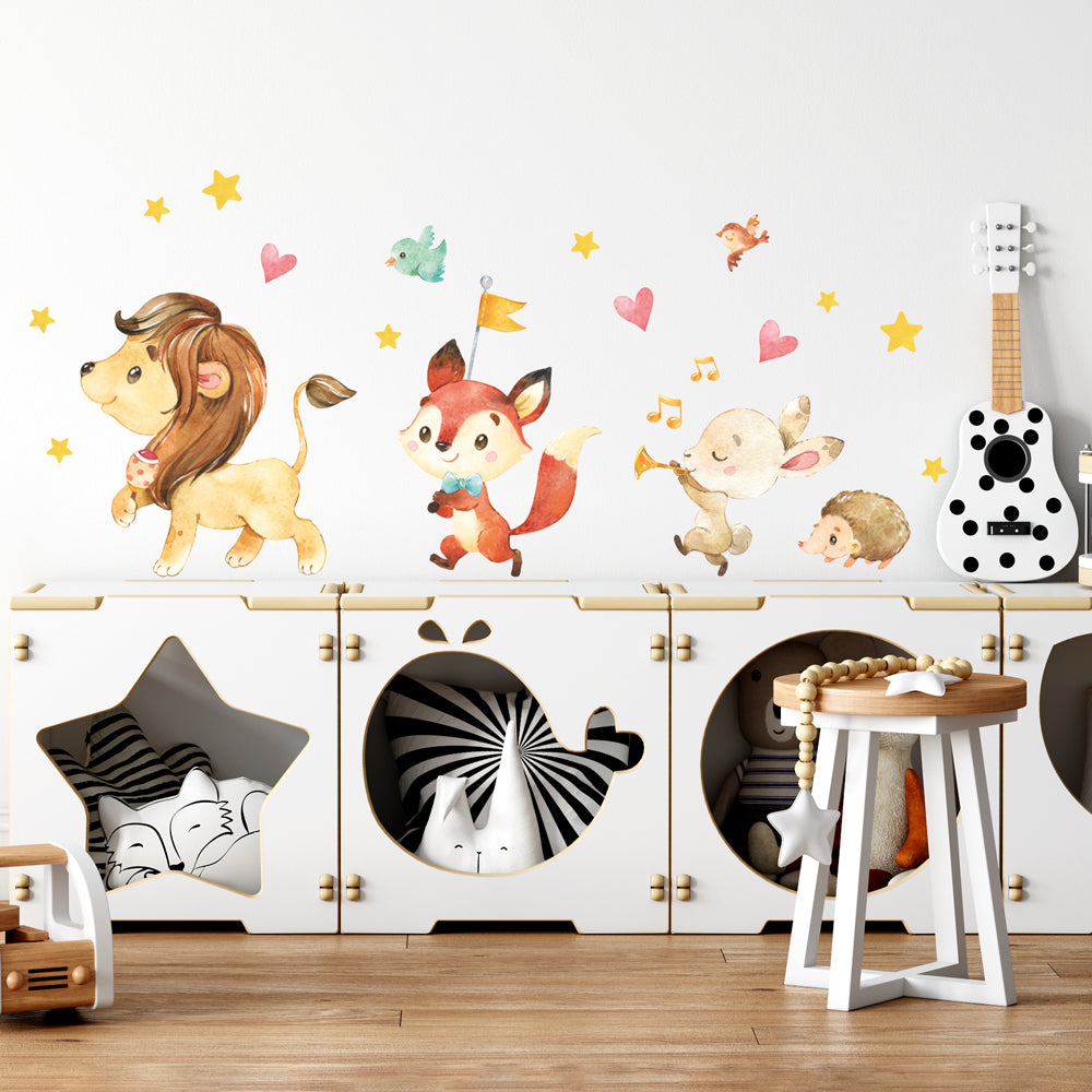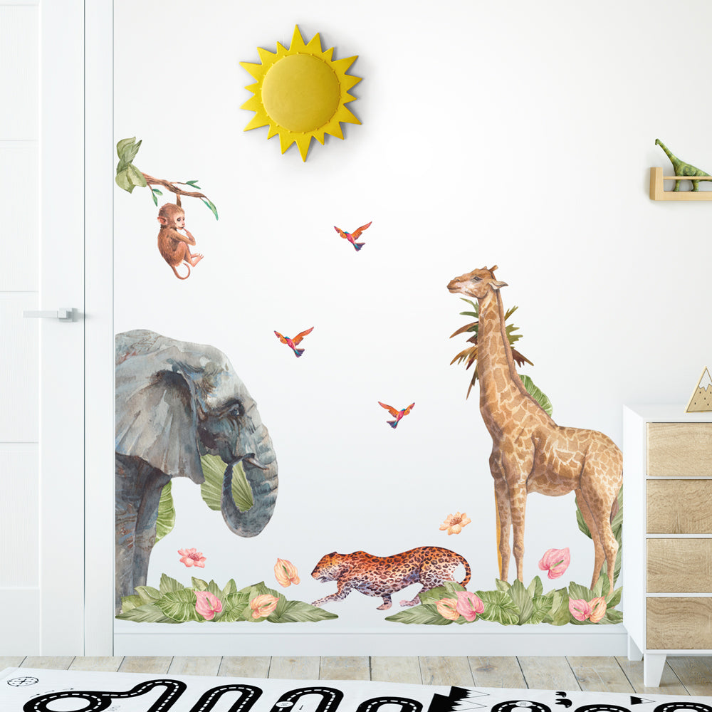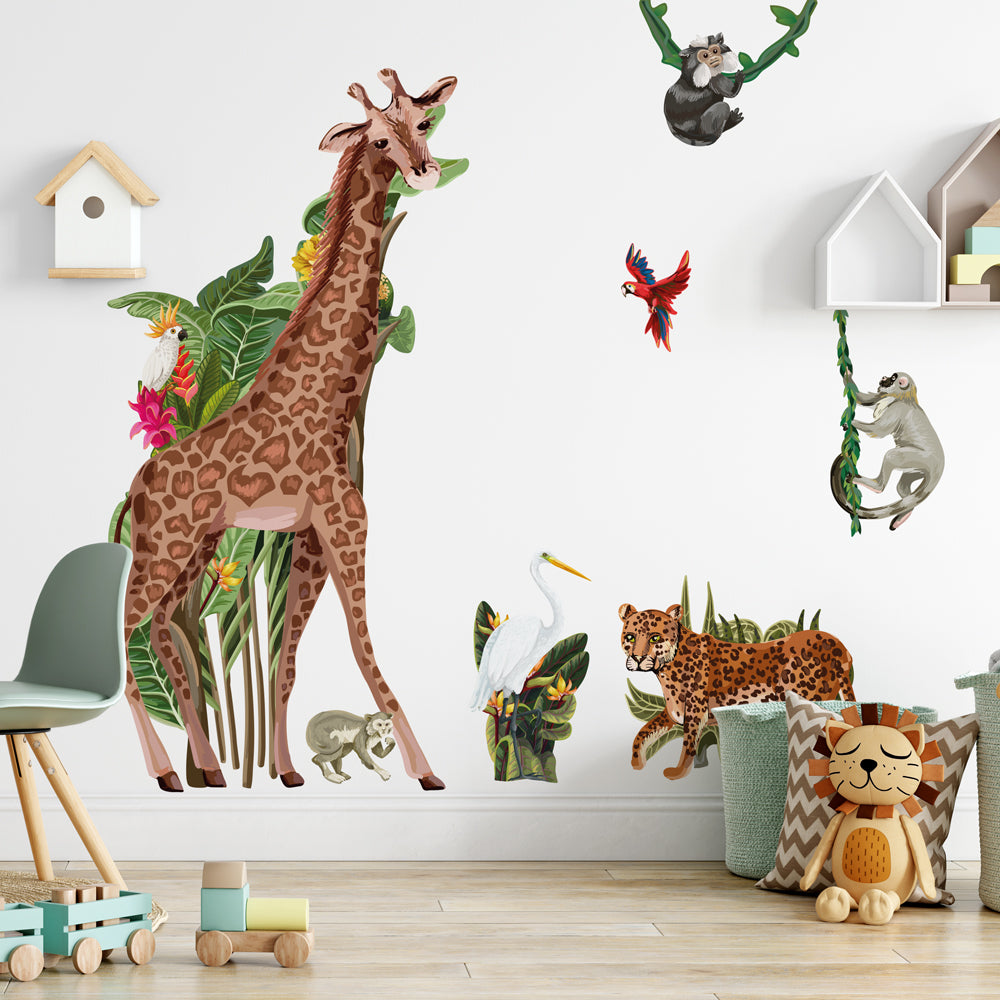 Aggiungi un tocco di magia alle tue pareti con la nostra collezione di adesivi divertenti e colorati, perfetti per aggiungere un tocco di gioia e colore alla cameretta del tuo piccolo. Trova adesivi adorabili e divertenti animali della savana e di altri habitat, ideali per neonati e bambini.