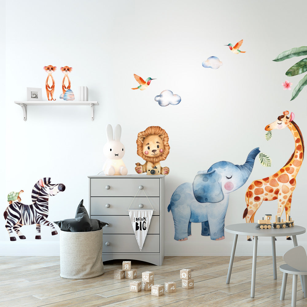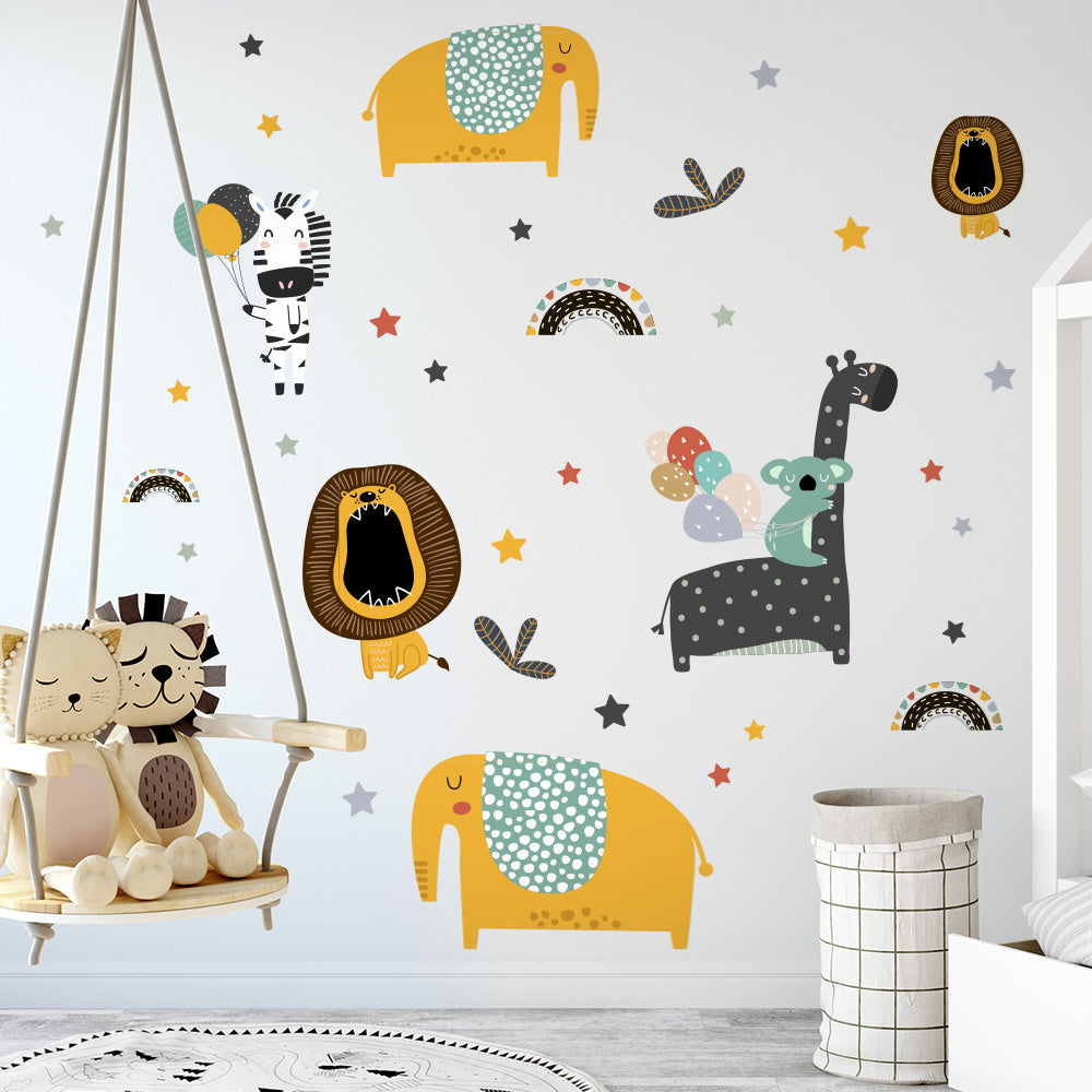 Aggiungi un tocco di magia alle tue pareti con la nostra collezione di adesivi divertenti e colorati, perfetti per aggiungere un tocco di gioia e colore alla cameretta del tuo piccolo. Trova adesivi adorabili e divertenti animali della savana e di altri habitat, ideali per neonati e bambini.