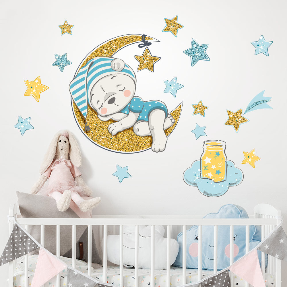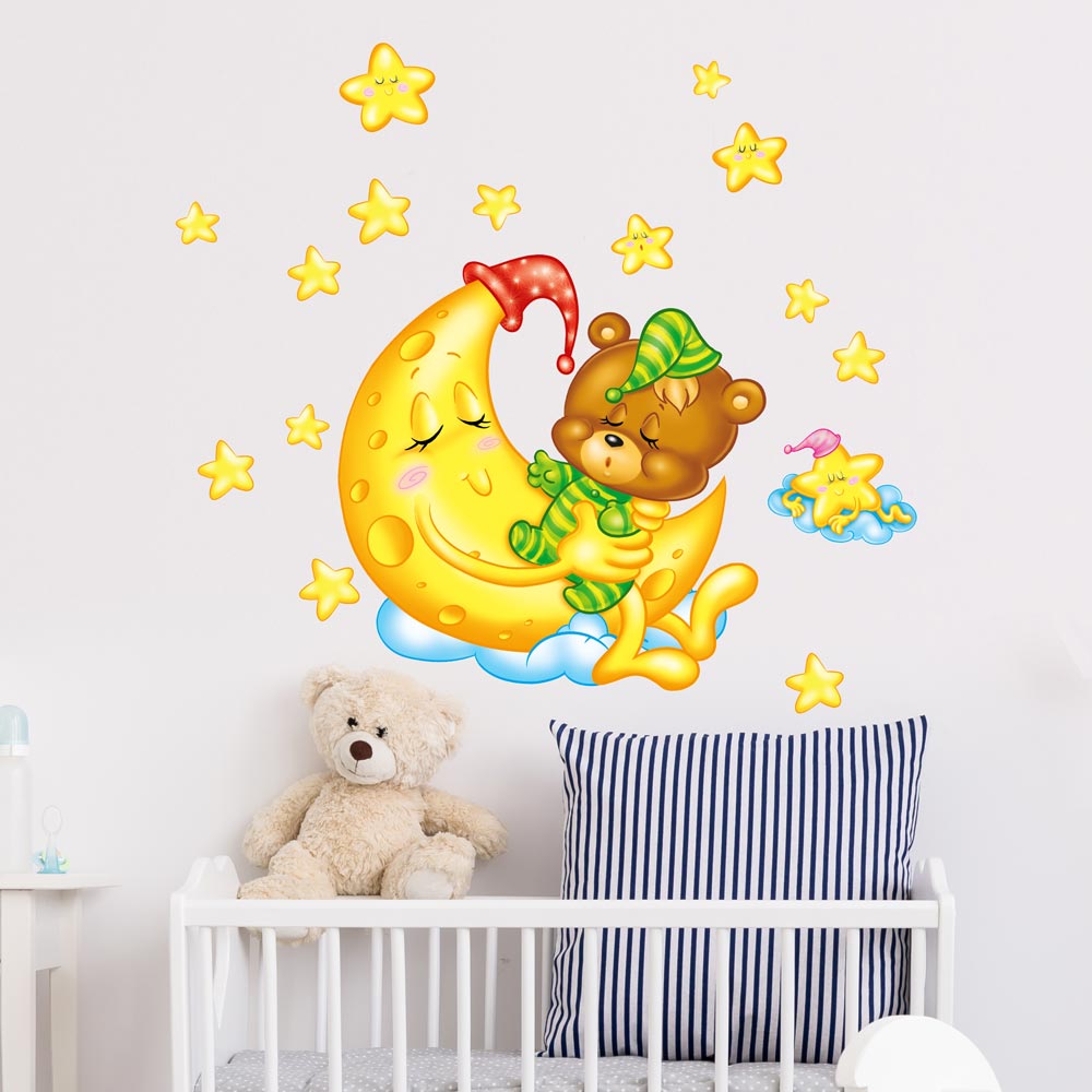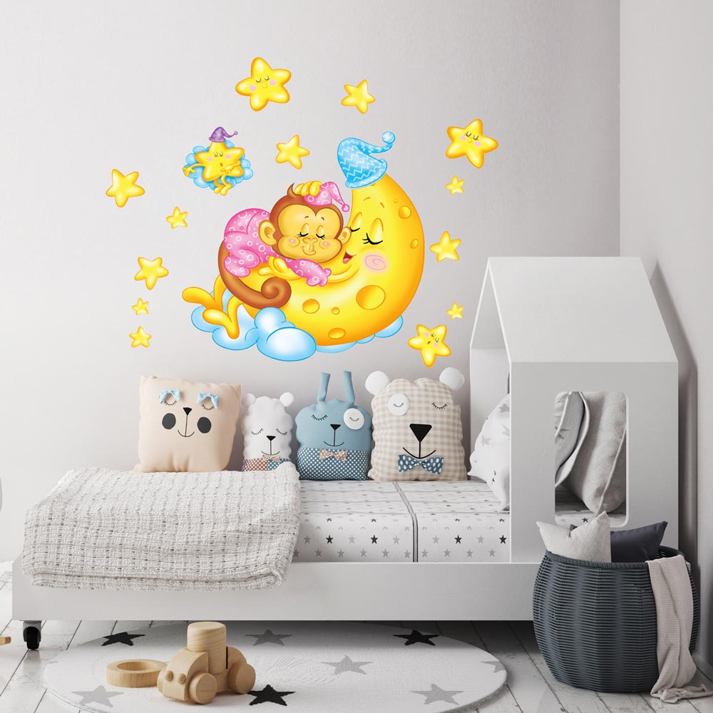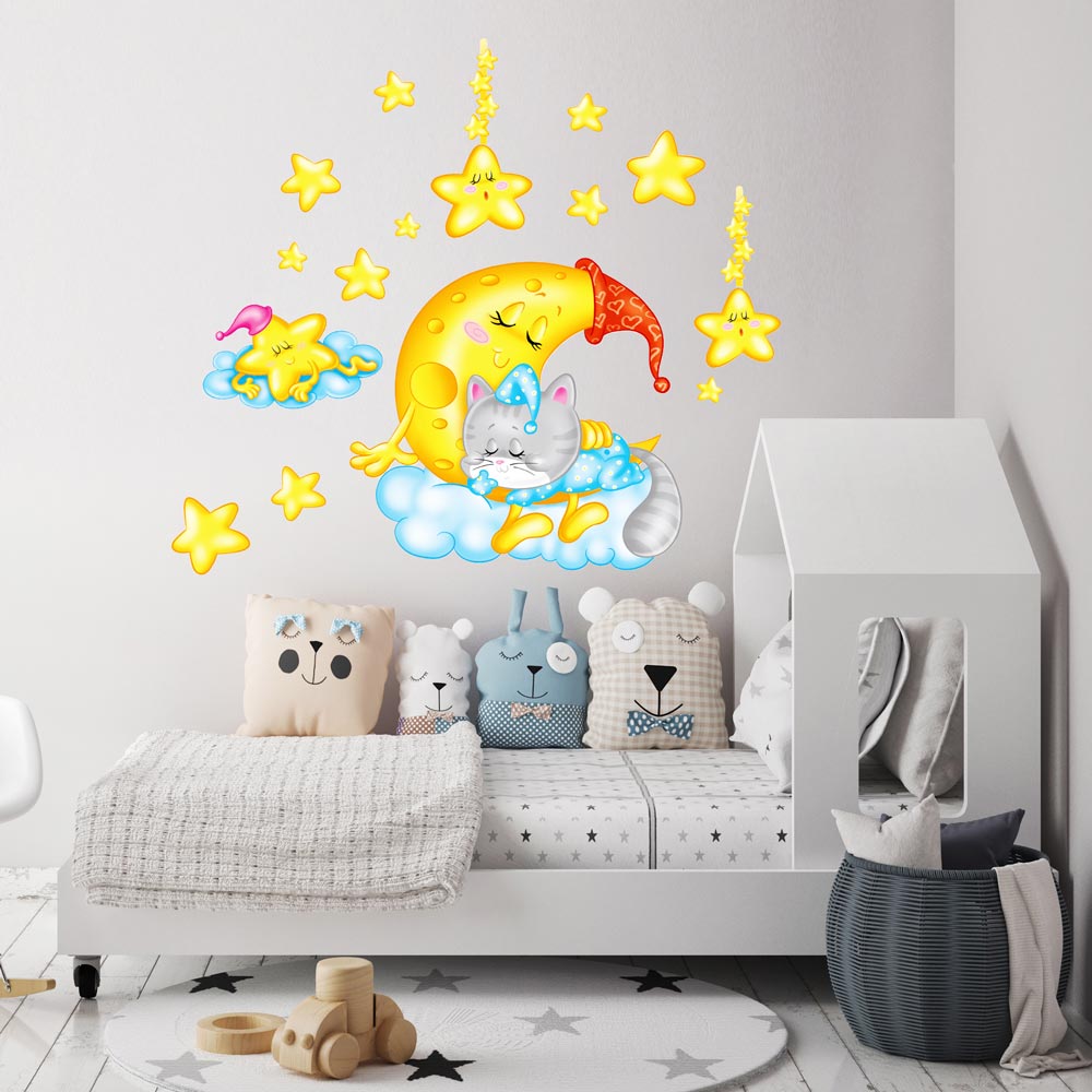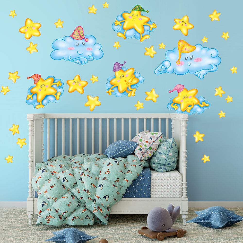Scopri i nostri adesivi murali per bambini a tema Sogni D'oro: adesivi con luna e stelline, gufetti e tanto altro ancora per decorare la cameretta!
