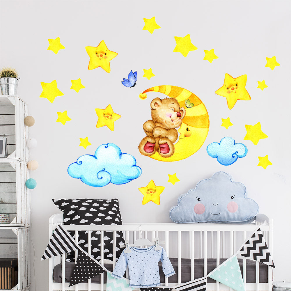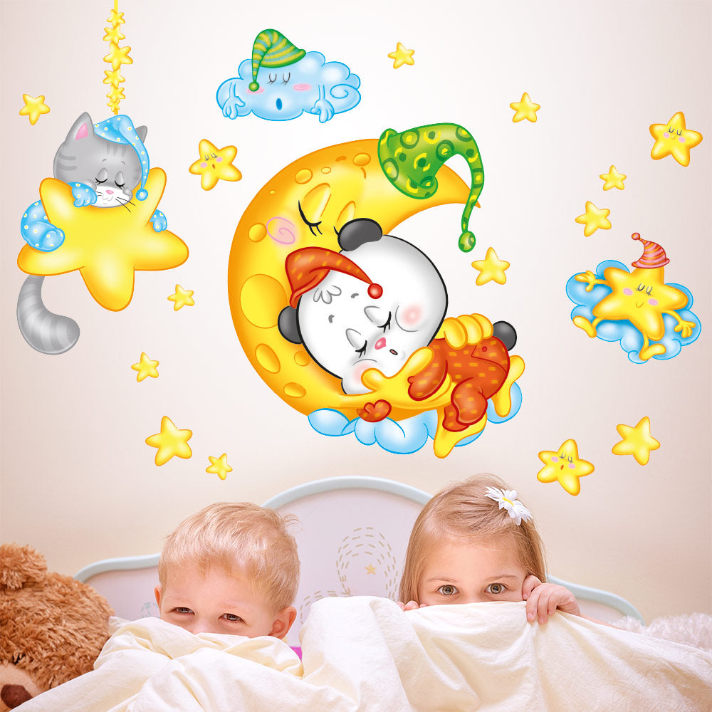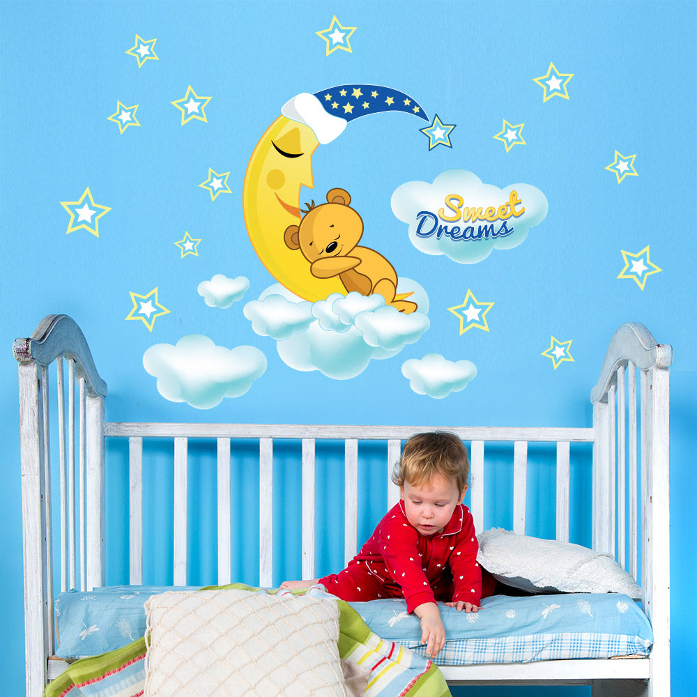 Scopri i nostri adesivi murali per bambini a tema Sogni D'oro: adesivi con luna e stelline, gufetti e tanto altro ancora per decorare la cameretta!