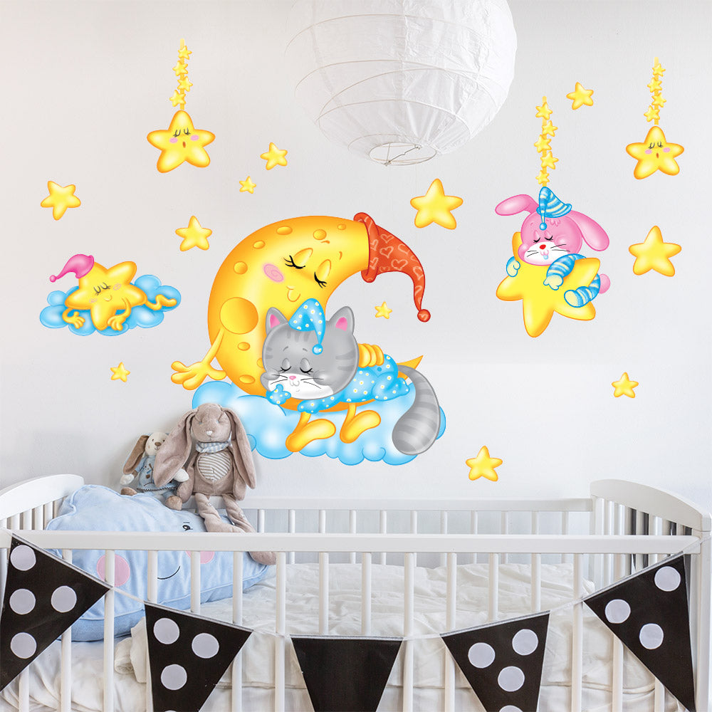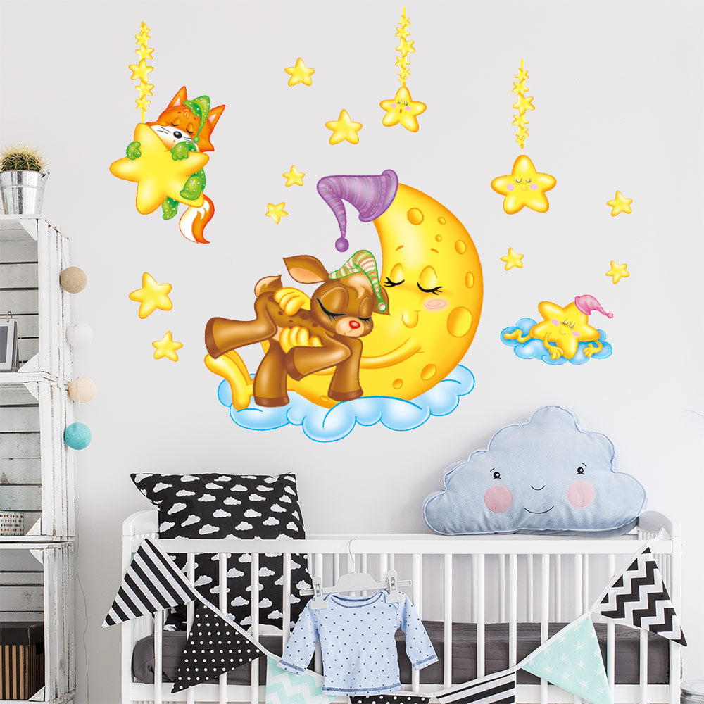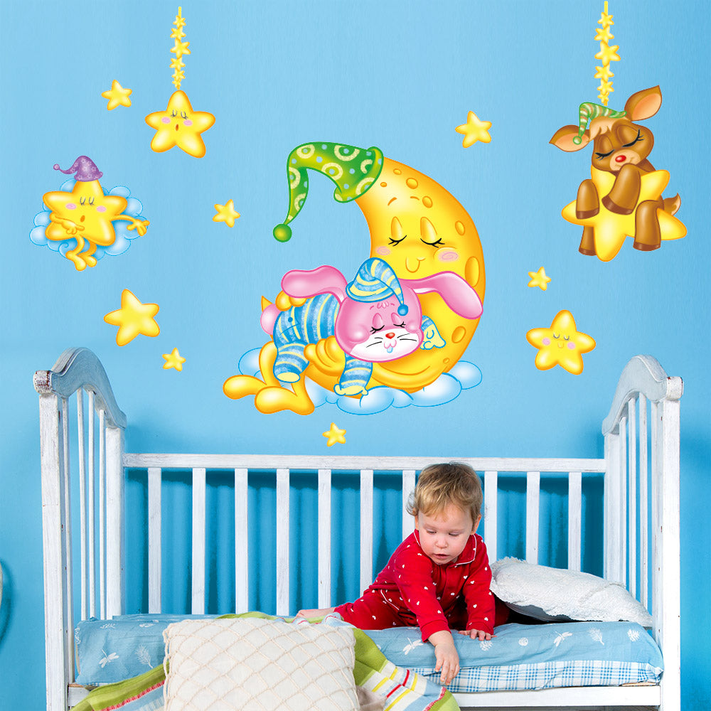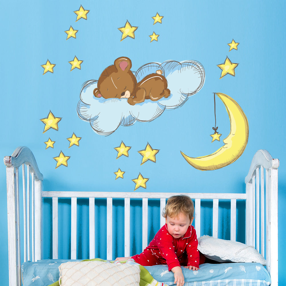 Scopri i nostri adesivi murali per bambini a tema Sogni D'oro: adesivi con luna e stelline, gufetti e tanto altro ancora per decorare la cameretta!