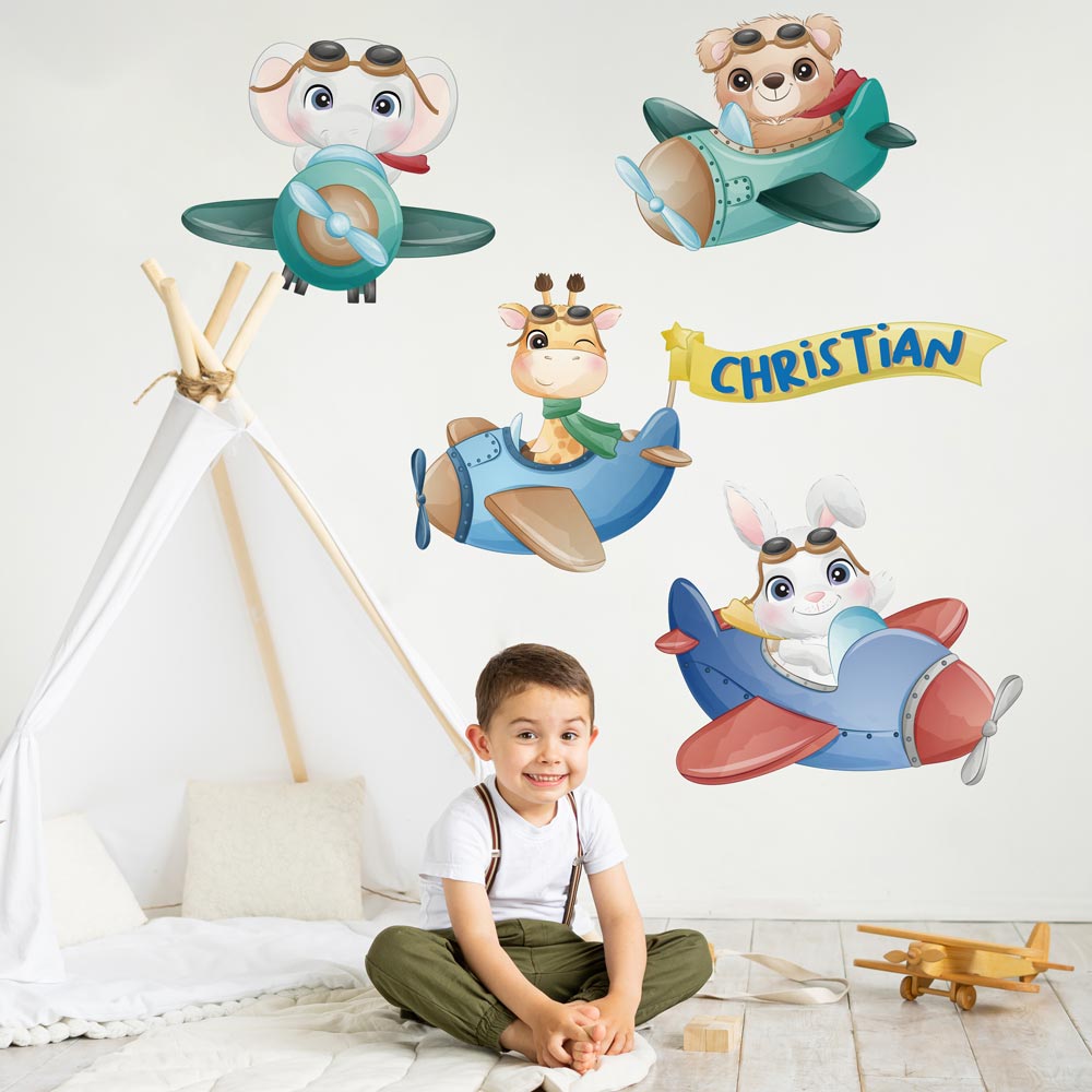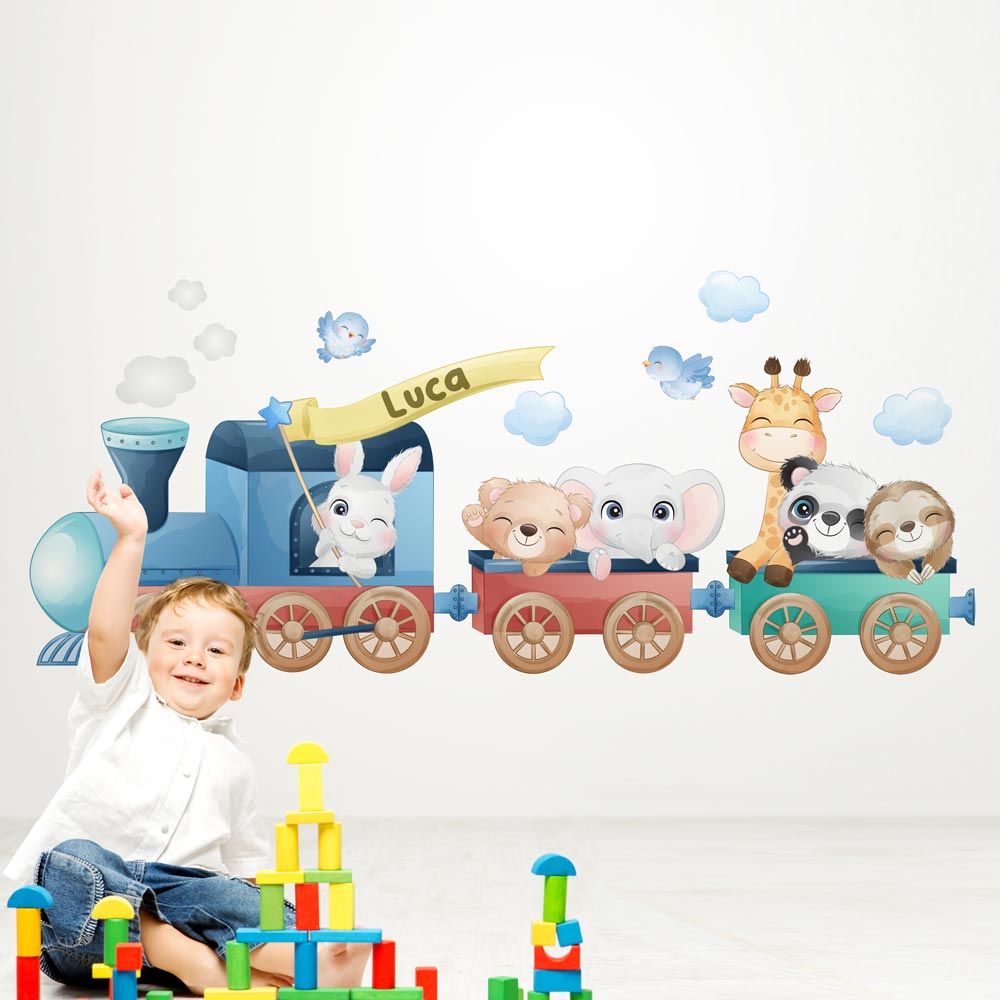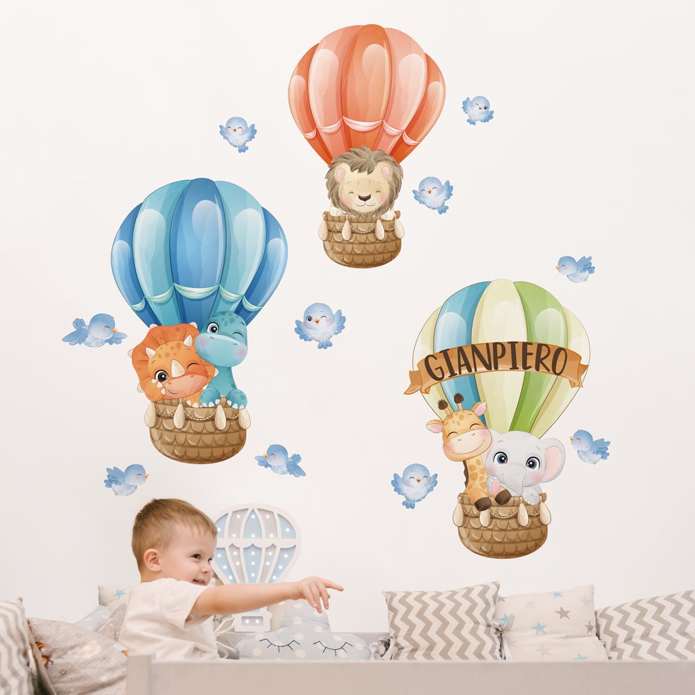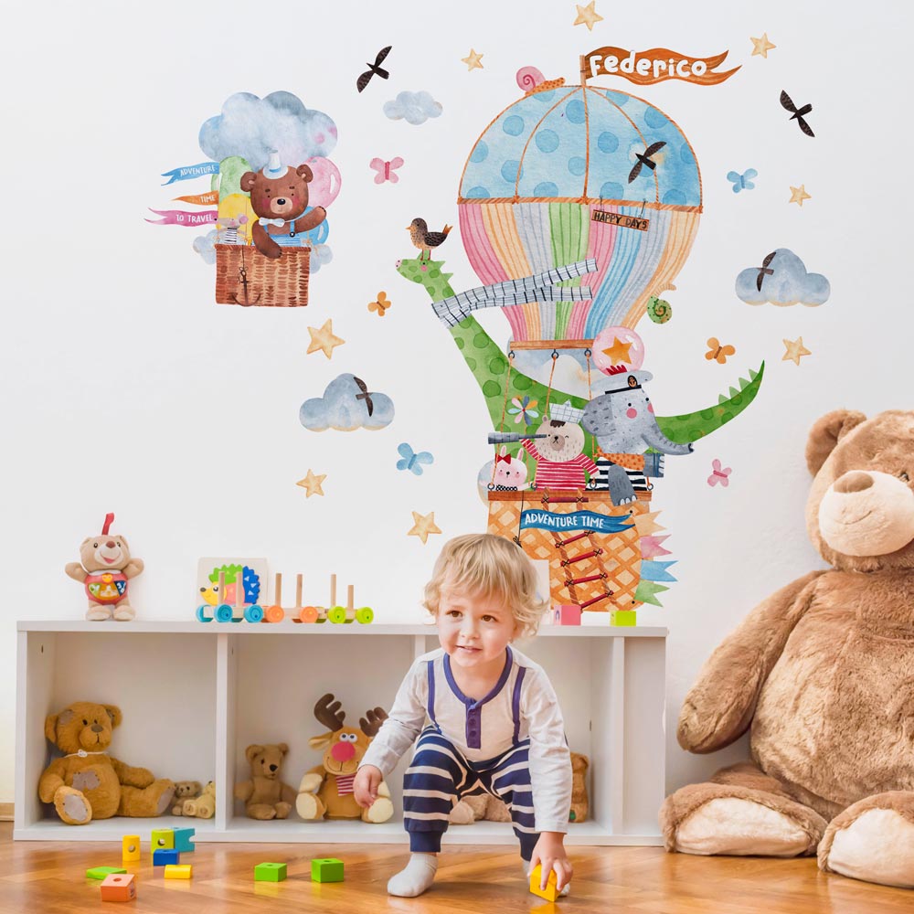 Decora la cameretta a tema Viaggio con gli adesivi murali con trenini e mongolfiere: tanti stickers con gli animaletti più amati, atossici e lavabili.