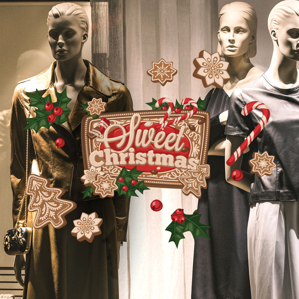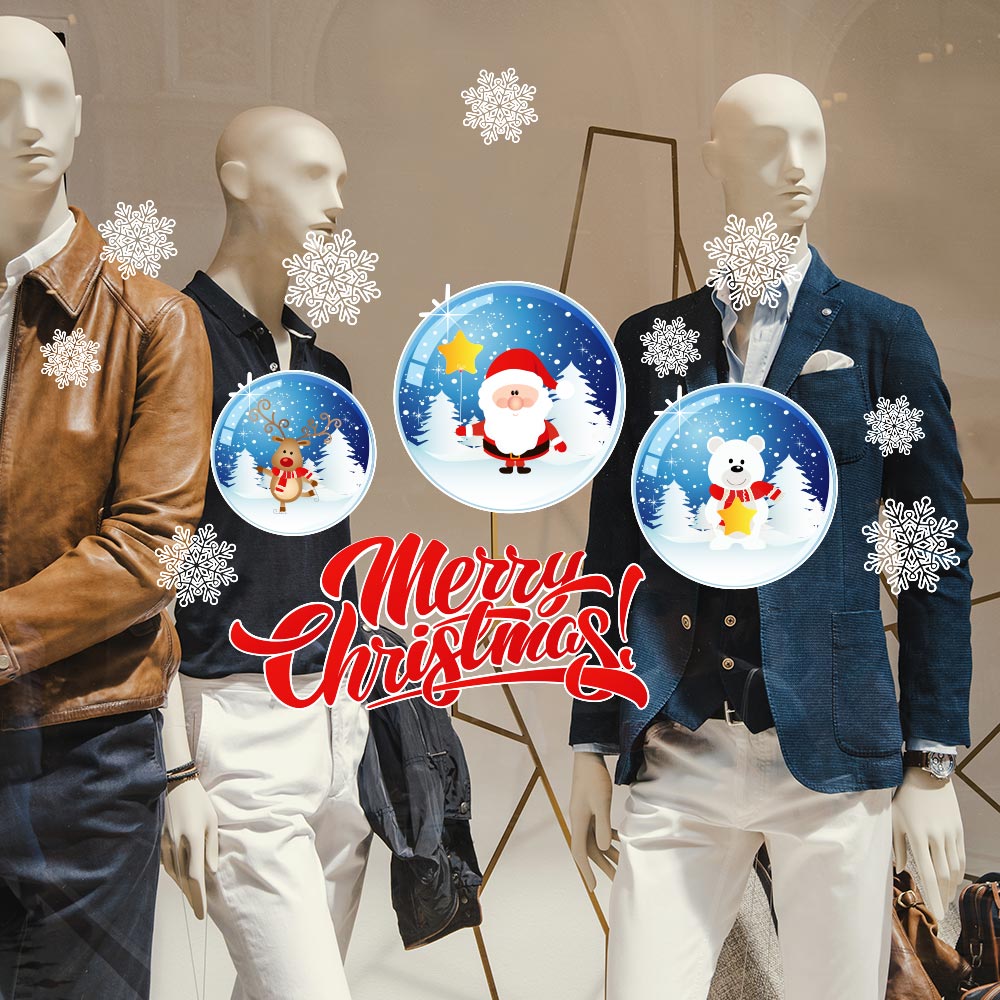 Centinaia di idee per decorare il tuo negozio con adesivi natalizi.