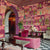 Il cuore della composizione è la palette vibrante e audace: i toni sgargianti del rosa, fucsia e magenta infondono una pura energia cromatica, trasformando l'ambiente in uno spazio di forte personalità e glamour. Questa scelta cromatica rende ogni stanza unica nel suo genere, ideale per salotti, camere da letto o boutique di design che vogliono stupire.