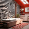 Linee dritte e pulite si combinano con precisione matematica, creando un intrigo dinamico di corridoi e angoli. Il risultato è un affascinante labirinto chic che trasforma ogni stanza in un'opera d'arte Optical (Op Art). Il pattern geometrico in potente bianco e nero regala una straordinaria illusione di profondità, aggiungendo carattere e dinamismo all'ambiente senza appesantire.