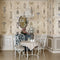 Il design mette in scena una composizione magistrale di vasi antichi, orologi d'epoca e candelabri finemente cesellati, resi con un dettagliatissimo effetto gouache. Questa tecnica pittorica dona al disegno una morbidezza visiva e una leggerezza che ricordano i dipinti su carta pregiata, arricchiti da motivi floreali che evocano le porcellane più esclusive delle dinastie orientali.