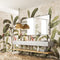 Rifugiati in un paradiso tropicale con la nostra carta da parati "Natura Equatoriale" in stile vintage. I toni tenui e morbidi del verde oliva e del beige, con tocchi floreali rossi e gialli, insieme allo sfondo beige effetto cemento con ombre di piante tropicali in tonalità di grigio, creano un'atmosfera accogliente e raffinata in tutta la casa.