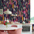 Questo design audace e moderno presenta un dinamico intreccio di variopinte foglie e fiori tropicali che si stagliano con forza su un elegante sfondo blu notte. Le tonalità brillanti e l'uso del contrasto rendono questa fantasia unica.