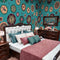 Il pattern è un sofisticato trompe l'oeil che ritrae una ricca collezione di piatti antichi con raffigurazioni dal sapore esotico. Questi elementi sembrano usciti direttamente da un'epoca lontana, donando alla stanza un fascino vintage senza tempo e un'atmosfera di lusso discreto e indimenticabile.