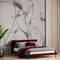 Il fondo materico, arricchito da un raffinato effetto anticato, dona profondità e storia alle pareti, creando un fondale artistico che evoca la serenità di un risveglio nella natura.