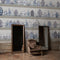 A rendere inconfondibile questa decorazione murale sono i motivi che la arricchiscono: raffinate decorazioni floreali che richiamano chiaramente l'ispirazione Chinoiserie. L'intera scena esplode in un caleidoscopio di mille tonalità di blu—che spaziano dal profondo cobalto intenso al tenue celeste polvere—generando un impatto visivo di grande impatto, al contempo sofisticato e intrinsecamente rilassante.