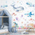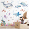 Kit di adesivi murali per cameretta in PVC trasparente che riproduce un allegro fondale marino popolato da pesci, coralli e stelle