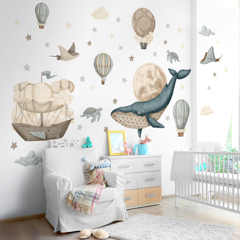 Adesivo effetto tessuto che riproduce il curioso Piccolo Principe che scruta l'orizzonte dal suo piccolo pianeta
