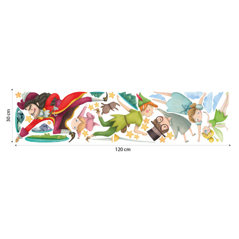 Adesivo effetto tessuto che riproduce Peter Pan impegnato a combattere contro Capitan Uncino, sostenuto dai suoi amici e la magica Trilli. Il disegno completo verrà fornito pretagliato su un foglio di...