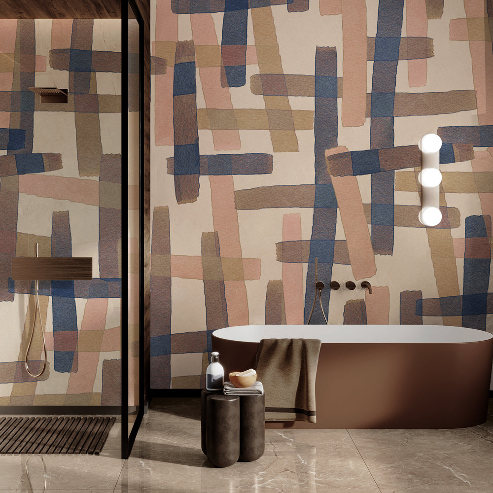 Supporto in TNT con finitura goffrata spalmata a rilievo, adatto esclusivamente all’utilizzo per interni. Lavabile con panno umido, traspirante, fonoassorbente e ignifuga.